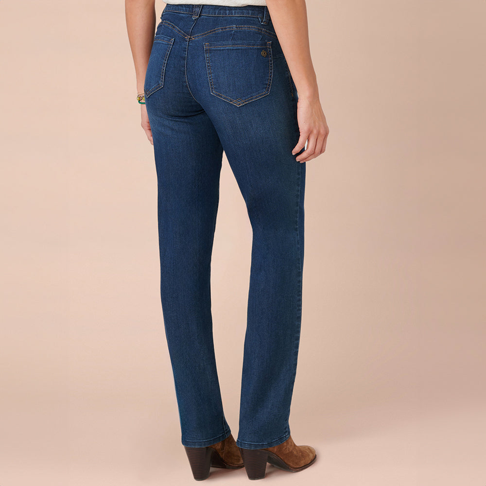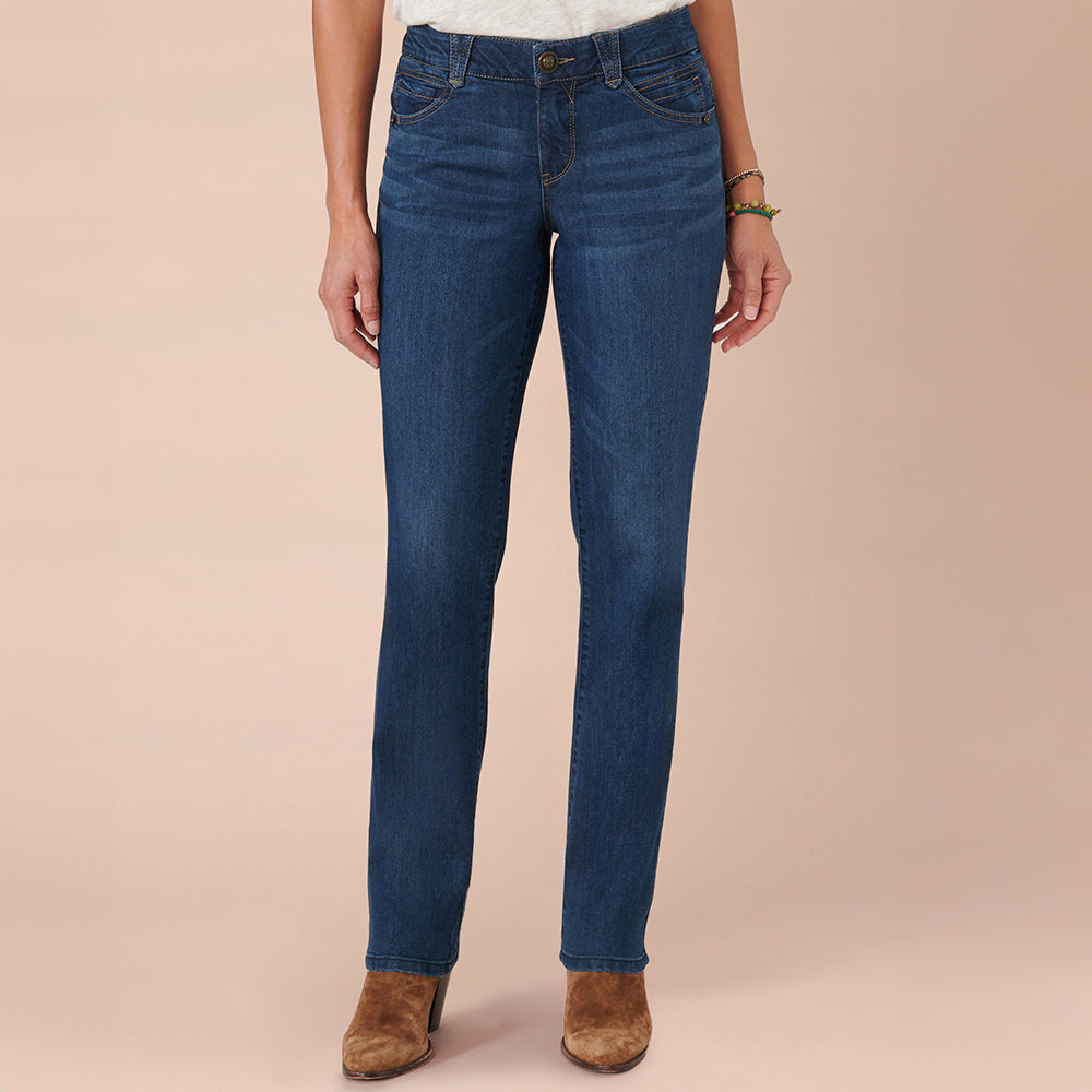 The petite Straight Leg jean offers a timeless silhouette with a relaxed, slightly slim straight leg that’s easy to wear from day to night. Designed with "Ab"solution® fit technology to smooth, support, and enhance your shape—for comfortable support and a flattering, lifted look.